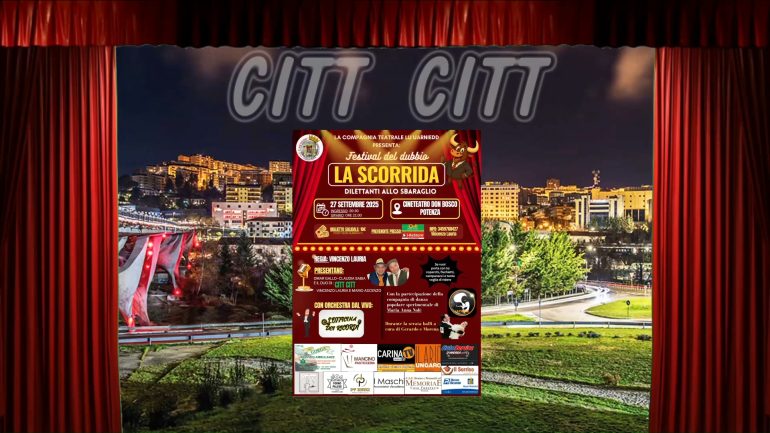 Riparte da giovedì 2 ottobre la nuova stagione di “Citt… Citt…” trasmissione a cura della Compagnia Teatrale Lu Uarniedd con la regia di Vincenzo Lauria. Sarà possibile seguirla sul digitale terrestre “Carina Tv” canale 85 e su “Radio Carina” in fm Basilicata, Puglia, Campania, Calabria, in Dab+ digital radio in Basilicata, Puglia e Campania, e dal Web in streaming audio e video su www.radiocarina.it.